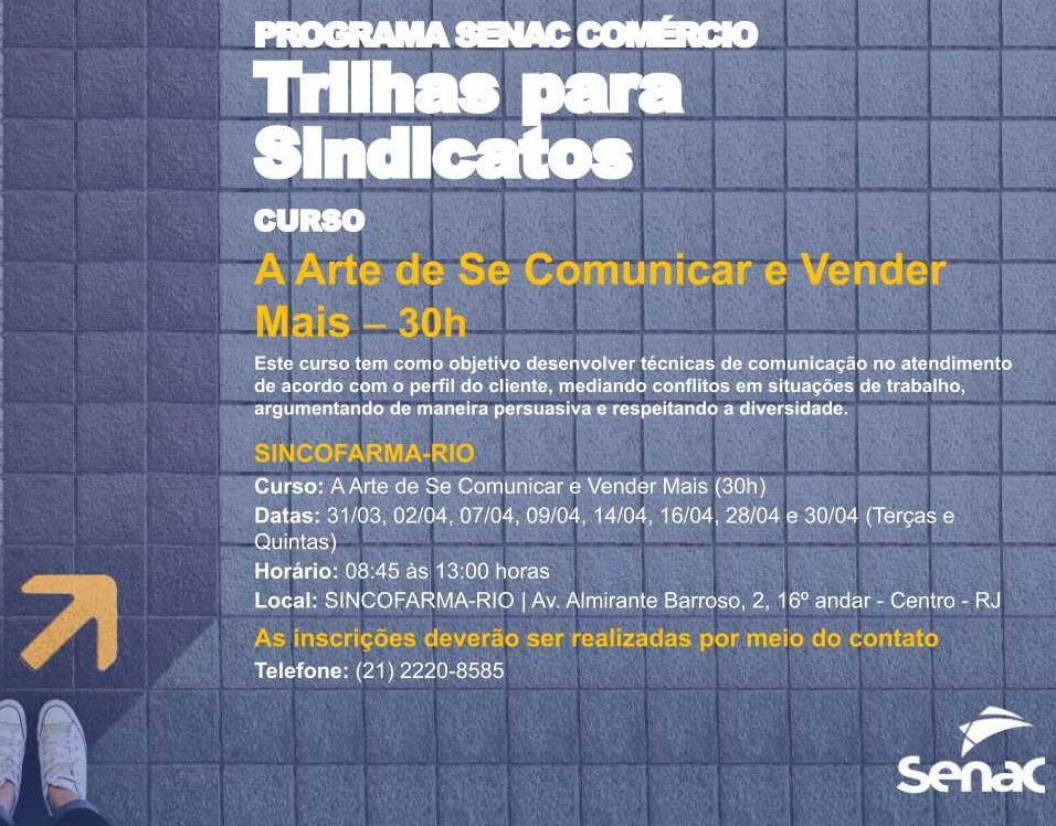 Trilhas para Sindicatos. Serão vários cursos voltados para o crescimento de seu negócio e o primeiro deles é “A Arte de Se Comunicar e Vender Mais”, com 30h de duração.
